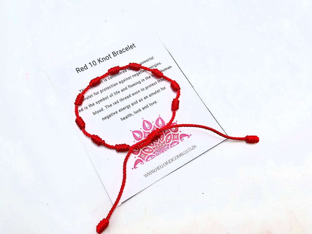 A 10 knot red string bracelet holds cultural significance across various traditions, symbolizing diverse meanings.