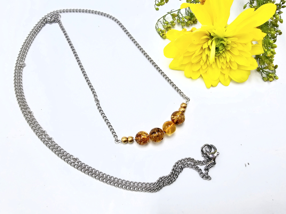 Comes on a stainless steel chain approx 60cm with brass beads inbetween.