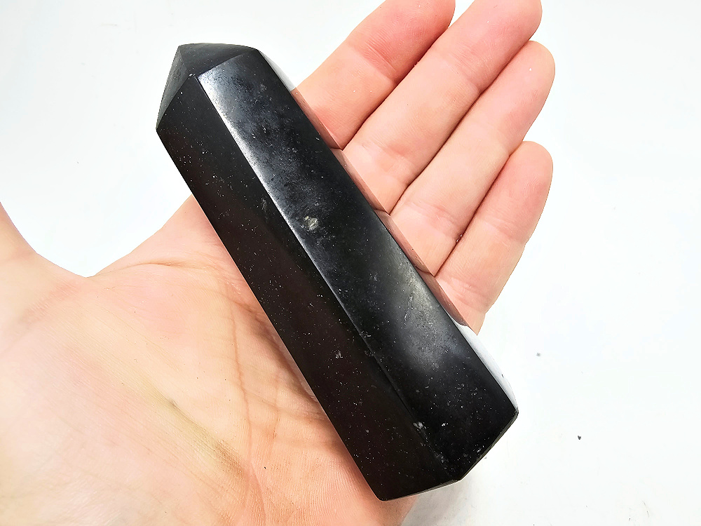 These sleek Black Basalt Polished Points are carved from solid volcanic rock, radiating strong earth energy and stability. Formed from rapidly cooled lava, basalt is deeply connected to the root chakra, offering powerful grounding, resilience, and protection. The polished finish enhances the natural dark beauty of the stone while directing energy with precision, making these points ideal for energy work, gridding, or space clearing. Whether used in meditation or as a statement piece, Black Basalt helps anchor your energy, release negativity, and foster inner strength. A must-have for those seeking balance and steadfast support in their spiritual journey.
