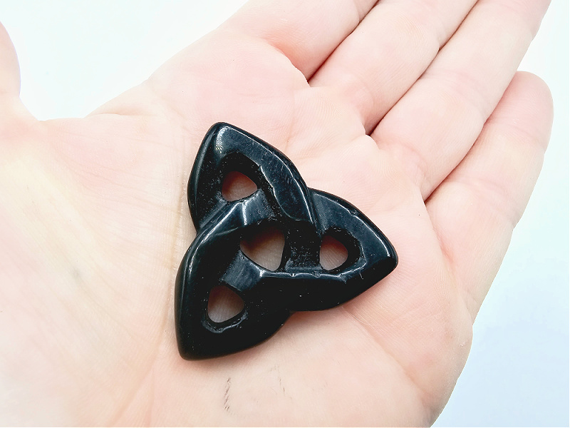 Enhance your spiritual journey with our Black Obsidian Triquetra Symbol. This exquisite piece combines the protective properties of black obsidian with the timeless Celtic Triquetra design, symbolizing unity, protection, and eternal life. Perfect for meditation, energy healing, or as a striking addition to your home décor, this black obsidian Triquetra amplifies positive energies while shielding against negativity.