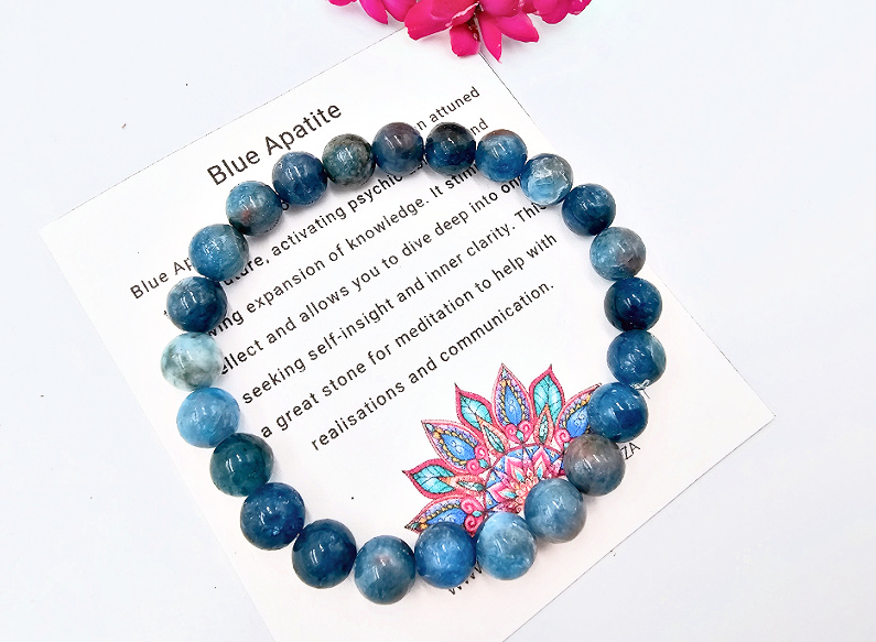 Blue Apatite is a stone of manifestation attuned to the future, activating psychic abilities and allowing expansion of knowledge. It stimulates intellect and allows you to dive deep into ones self seeking self-insight and inner clarity. Its vibrations attracts guides and other positive entities assising in communication. This is a great stone for meditation to help with realisations and communication.