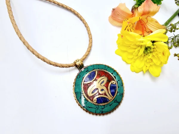 A unique handmade Nepali design with a large centre piece on a platted rope necklace.