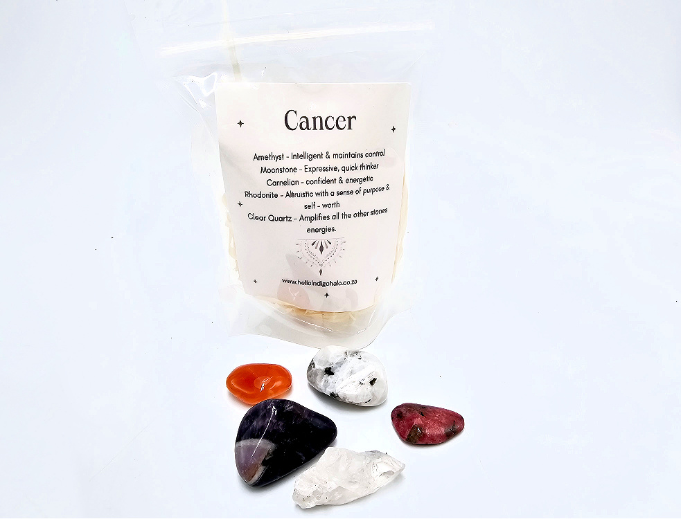 Crystals & gemstones have been used for centuries for healing and for their unique metaphysical properties. These stones have been specifically chosen for their strengths for the star sign Cancer. They work best if you carry them around with you.