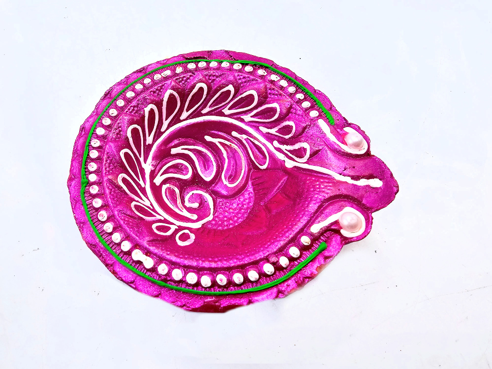 This beautifully handcrafted clay diya features a detailed round spiral design accented with delicate leaf patterns. Symbolizing growth, renewal, and the cycle of life, it’s perfect for adding a sacred touch to rituals, celebrations, or home décor. Designed to hold a tea light or oil wick, this diya brings a warm, earthy glow to any spiritual or festive setting.