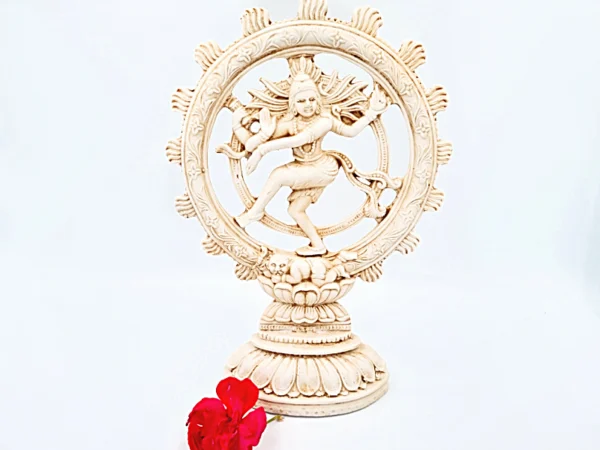Shiva is one of the three supreme gods found in Hindu mythology. Lord Shiva is part of the Holy trinity along with Brahma (the creator) Vishnu (the preserver) and Shiva is the destroyer of the transformer. He destroys to make way for new things. Shiva is one of the most benevolent Gods in Hinduism one who showers his devotees with immense love and destroys those who do evil. He is depicted dancing in the life wheel in this statue