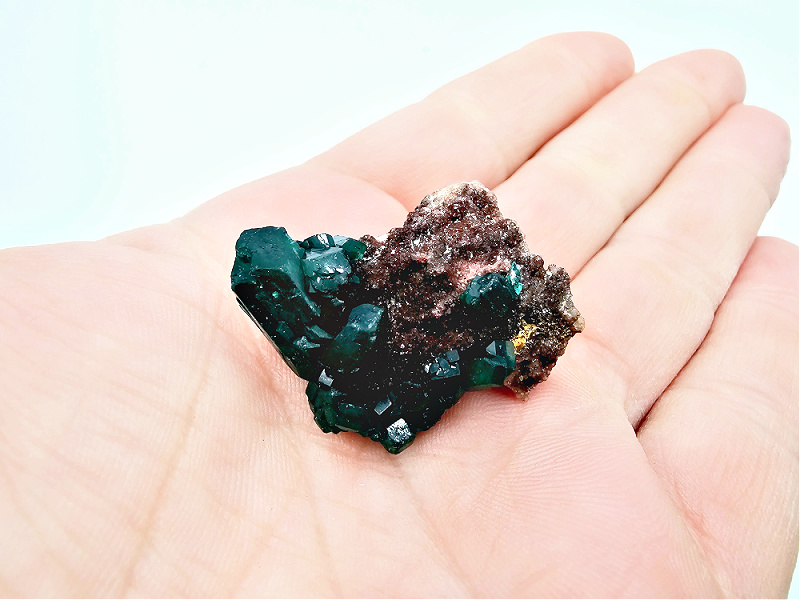This Dioptase is a captivating mineral from the Congo which mesmerizes collectors with its striking emerald-green hue. Dioptase is known to open the heart chakra, fostering emotional healing and self-discovery. Its energy is said to promote compassion, forgiveness, and inner peace, aiding in releasing past traumas and negative patterns. Dioptase serves as a beacon of spiritual growth, inviting individuals to embark on a journey of profound transformation and empowerment.