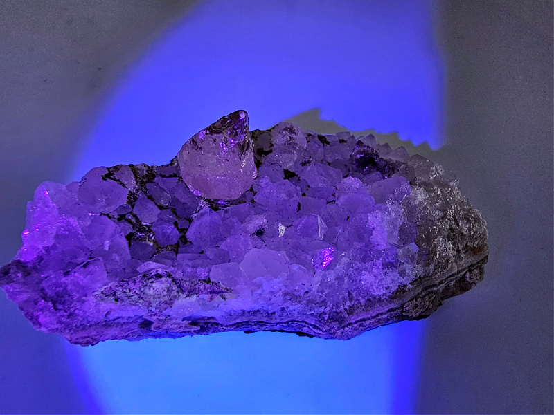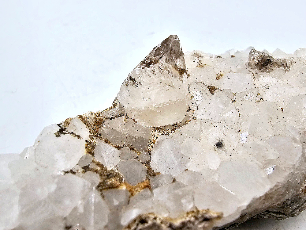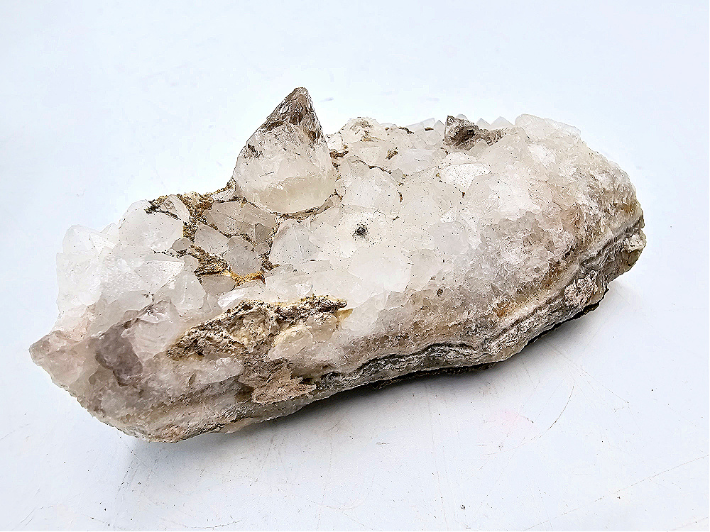 Dogtooth Calcite on Drusy Quartz Cluster B (180g)