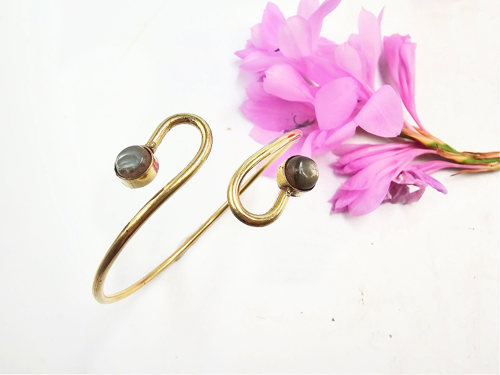 Double Spiral Labradorite Bangle (Brass)