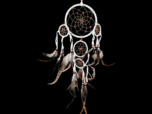 Native Americans believe that the night air is filled with dreams, both good and bad. When hung above the bed in a place where the morning sunlight can hit it, the dream catcher attracts and catches all sorts of dreams and thoughts into its webs. Good dreams pass through and gently slide down the feathers to comfort the sleeper below. Bad dreams, however, are caught up in its protective net and destroyed, burned up in the light of day.