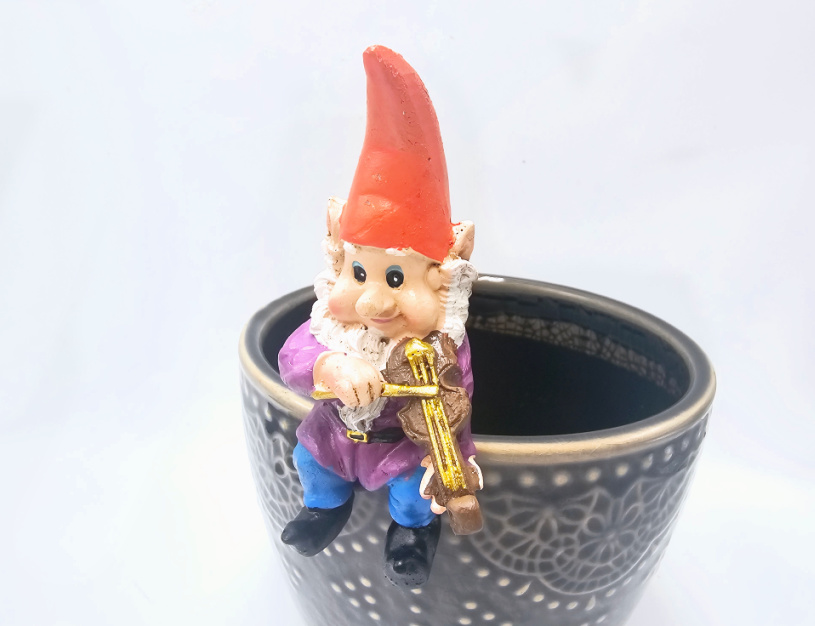 He can hook onto a branch, pot or fence with by his hands (Pot not included)