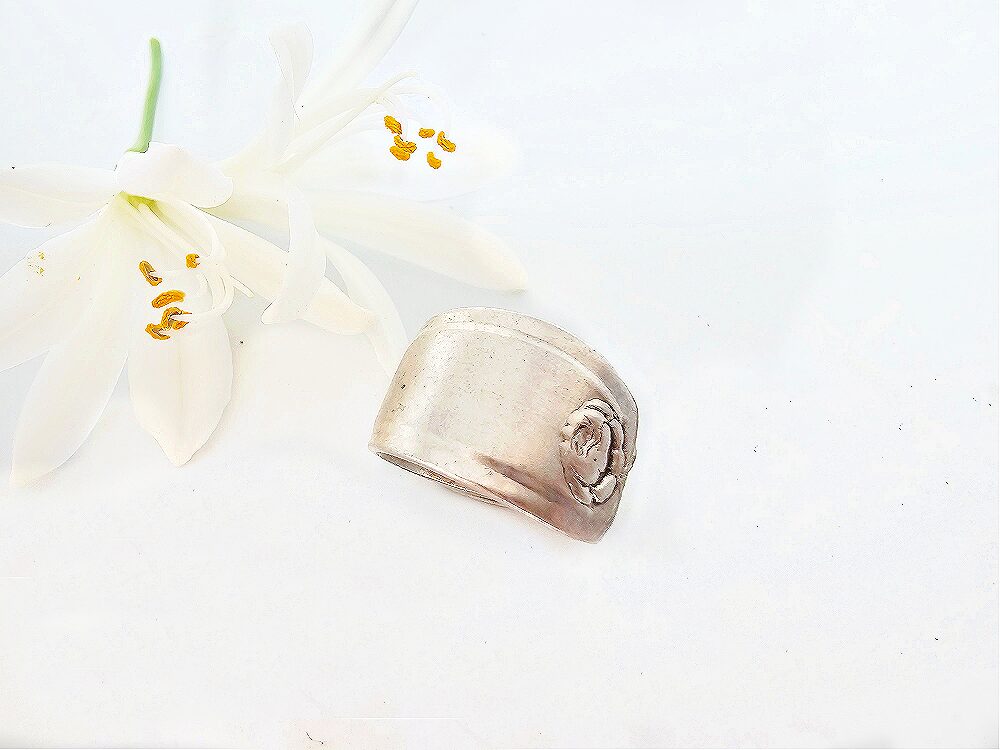 A graceful celebration of timeless design, the Gentle Rose Vintage Spoon Ring exudes sophistication and charm. Handcrafted in Cape Town, this beautiful piece is made from a repurposed thick silver-plated vintage spoon, adorned with a delicately engraved rose motif that wraps elegantly around the finger.