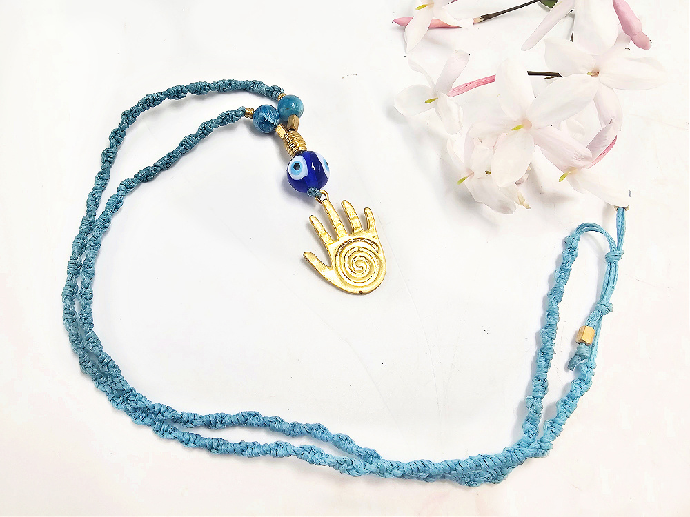 Healing Hand Evil Eye Macrame Necklace