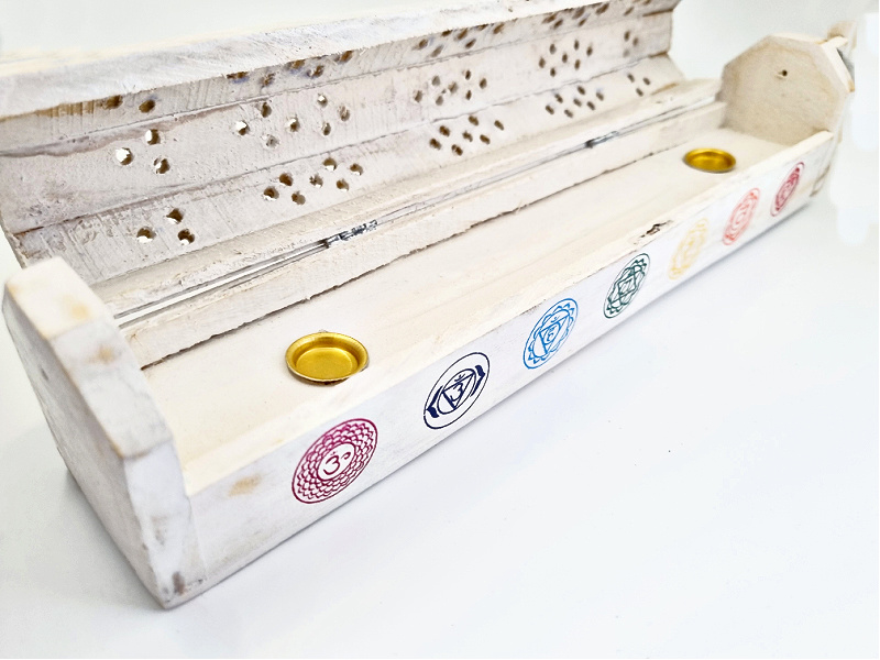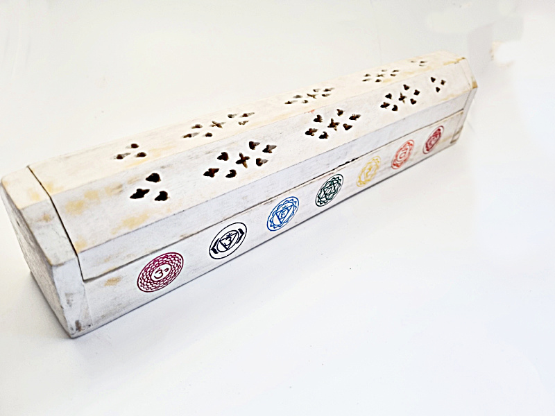 Horizontal Chakra Wooden Incense Box (White)Horizontal Chakra Wooden Incense Box (White)