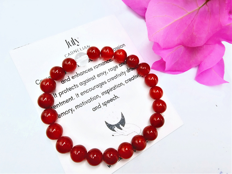 Carnelian ignites the fires of your passion and enhances romance. It protects against envy, rage and resentment. It encourages creativity drama, memory, motivation, inspiration, creativity and speech.Â