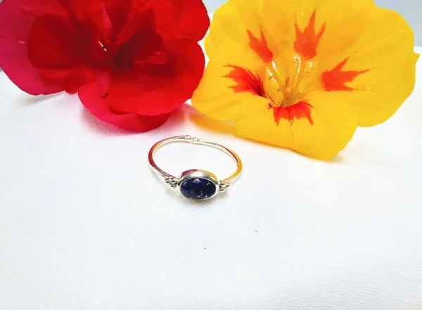 Lapis Lazuli Oval Ring Adjustable (925 Silver)