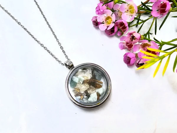 Carry luck, confidence, and abundance close to your heart with this beautiful Lucky Locket Crystal Chips Necklace. Crafted from stainless steel and suspended on a matching chain, this elegant locket is filled with a vibrant mix of Citrine, Tiger’s Eye, and Green Aventurine crystal chips — each chosen for their metaphysical energy and good fortune properties.