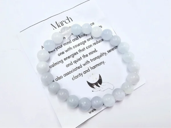 Aquamarine is an affinity with sensitive people. It has calming energies that can reduce stress and quiet the mind. It is also associated with tranquility, serenity, clarity and harmony. This sea blue crystal represents transformation and rebirth. Clear quartz will amplify the properties of the Aquamarine.