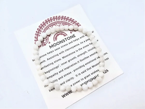 Moonstone helps ease stress and mixed emotions and helps with spiritual growth. Assisting with clairvoyance its a powerful manifesting stone.