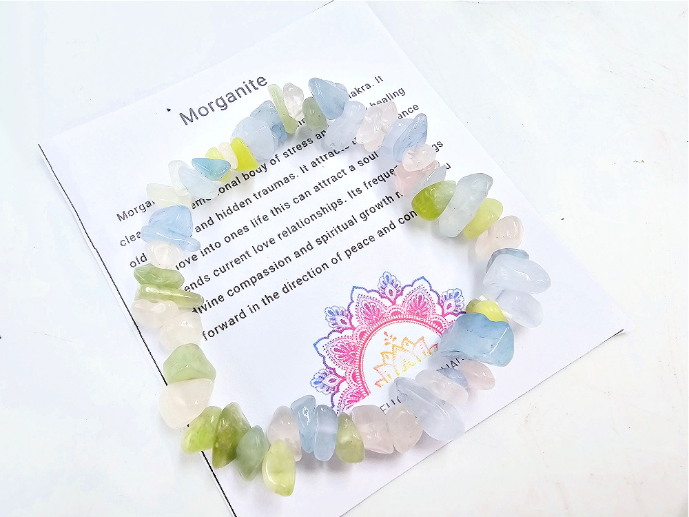 Morganite attunes to the heart and the heart Chakra. It cleanses the emotional body of stress and anxiety healing old wounds and hidden traumas. It attracts the abundance of love into ones life this can attract a soul mate or deepens current love relationships. Its frequency brings in divine compassion and spiritual growth moving you forward into the direction of peace and confidence.Â