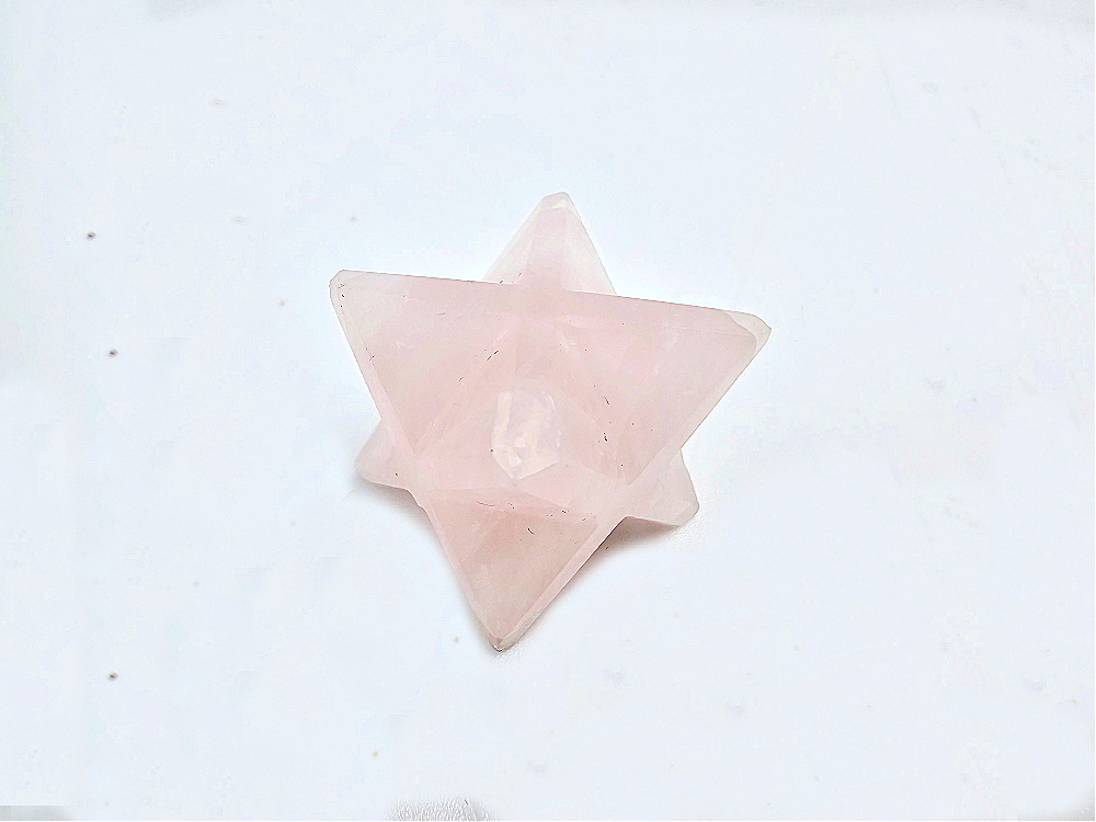 Embrace the loving energy of Rose Quartz with this delicately carved Merkabah Star. Blending sacred geometry with the heart-healing properties of Rose Quartz, this piece radiates compassion, self-love, and emotional harmony. The Merkabah shape, symbolizing the connection between spirit and body, enhances heart-centered meditation and spiritual growth. Ideal for fostering forgiveness, attracting love, and soothing emotional wounds.