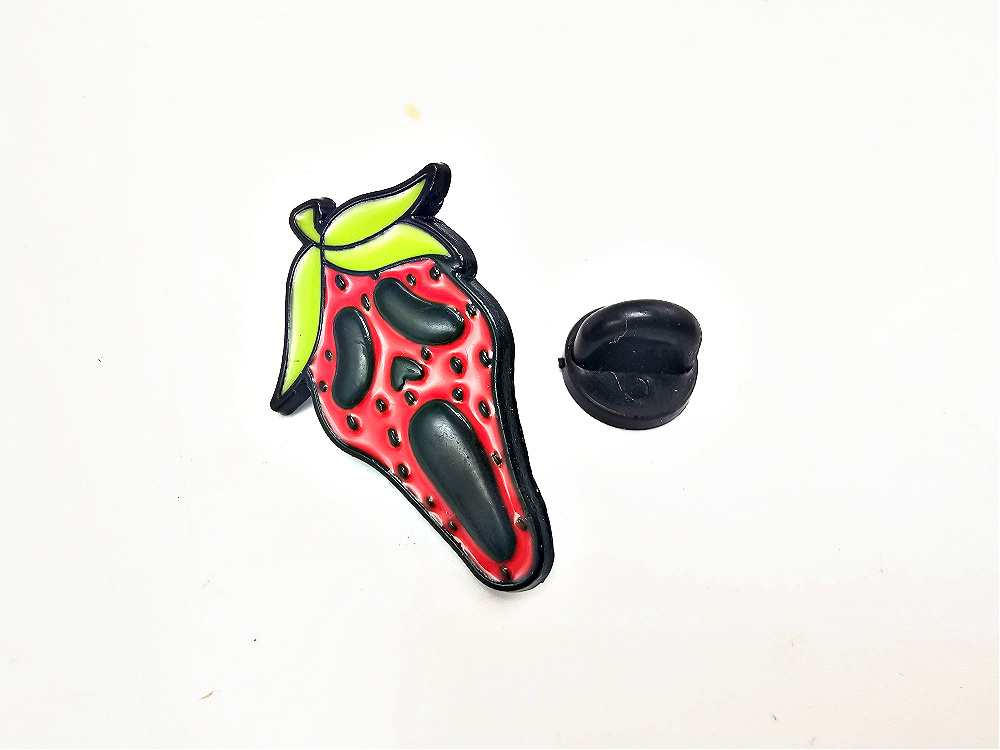Scary Strawberry Pin Badge for clothes, bags & jackets