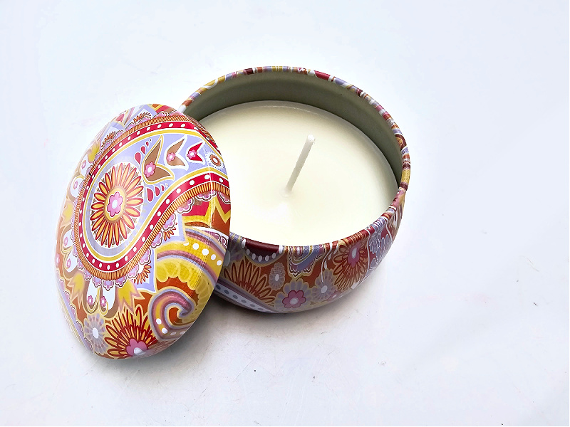 Beautifully designed candle in a tin, makes a lovley gift. When the candle is finished wash out with warm water and you left with a keepsake tin to hold your special treasures.