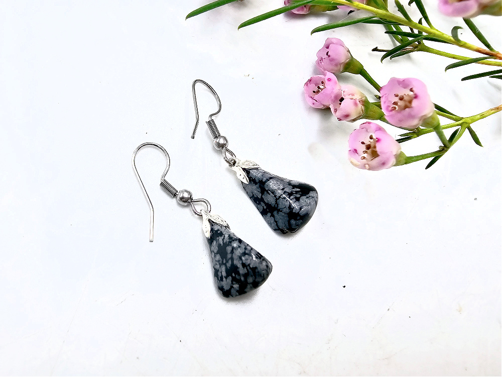 Snowflake Obsidian Drop Earrings (Stainless Steel)