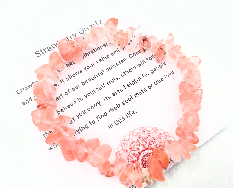 Strawberry Quartz has a vibrational energy of love and self love. It shows your value and how you are a vital part of our beautiful universe. Once you start to believe in yourself truly, others will follow that energy you carry. Its also helpful for people who are trying to find their soul mate or true love in this life.