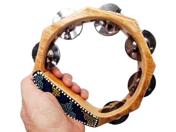 Add rhythm and energy to any moment with our Tambourine Dot Pointed (20cm). Handcrafted with a beautiful dot-painted design, this compact tambourine produces bright, joyful tones that are perfect for sound healing, ceremonies, meditation, or musical expression. The 20cm size makes it easy to hold and play, while the intricate artwork adds a touch of creativity and culture. Whether used for music, ritual, or display, this tambourine brings colour, sound, and spirit together in perfect harmony.