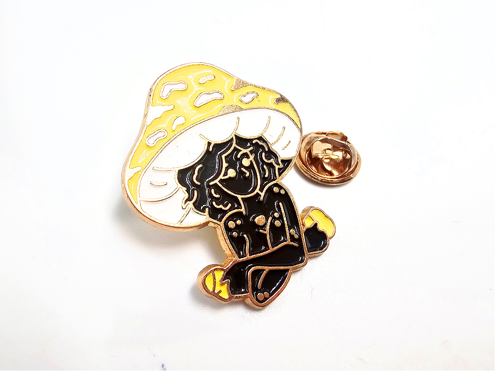 Yellow Mushroom Lady Pin Badgee for clothes, bags & jackets